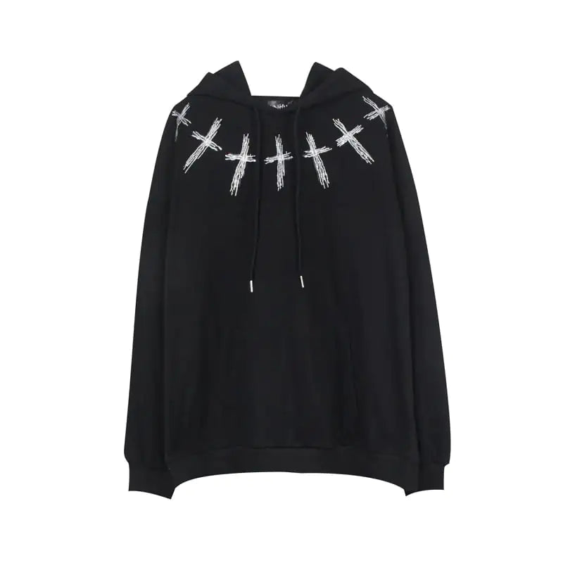 Featuring a unique cross print design adorned with shimmering rhinestones, this sweater is not just about comfort; it's also a statement piece that enhances your casual look. The long sleeves and hooded design provide added warmth and style, ensuring you stay cozy while looking effortlessly cool.